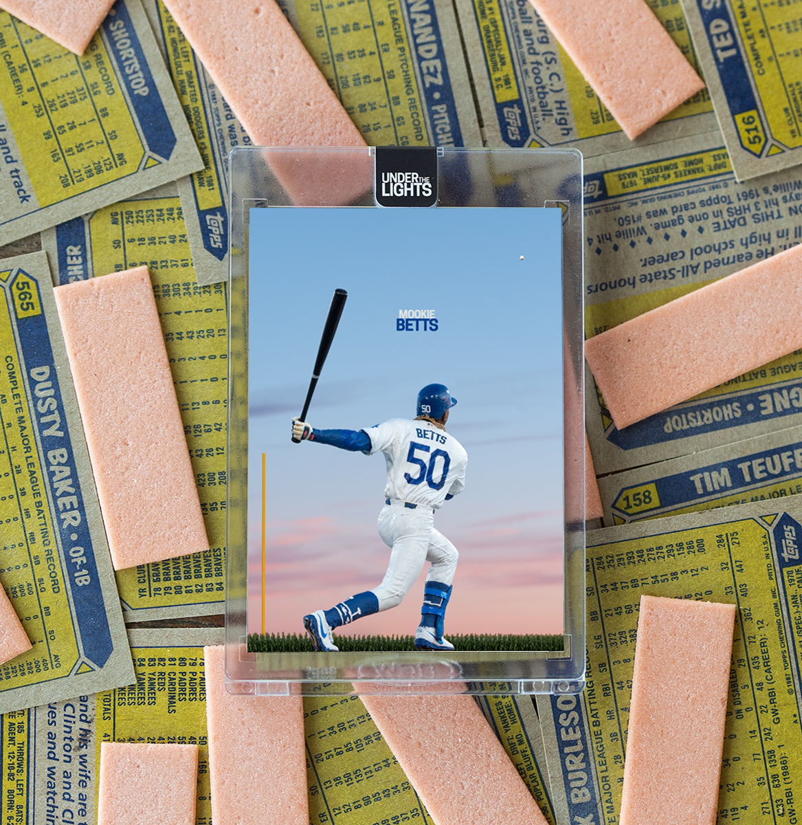 2024 Under The Lights Original Art Card of a customized Mookie Betts McFarlane figurine.