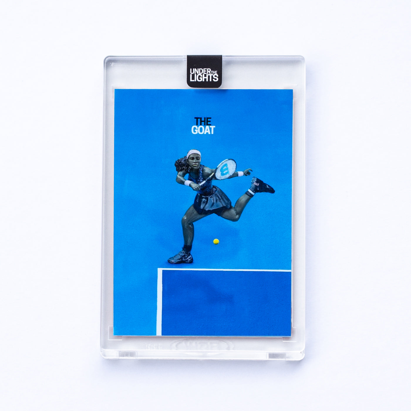 2025 Under the Lights Original Art Card of a Serena Williams figurine.