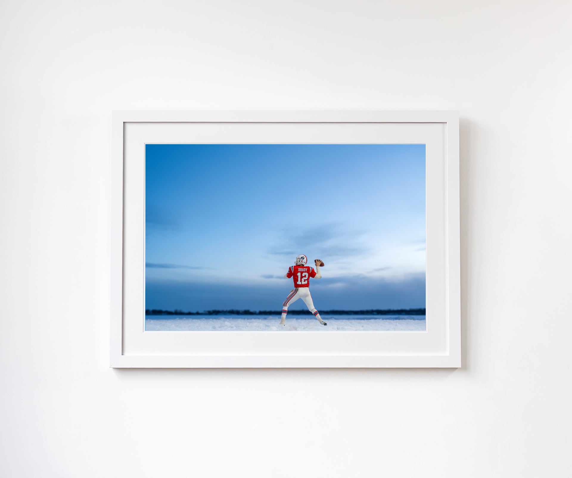 • Original photographic giclee print of a miniature Tom Brady figurine photographed in the snow.